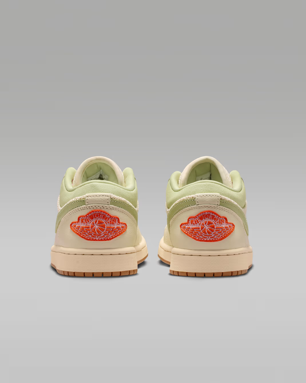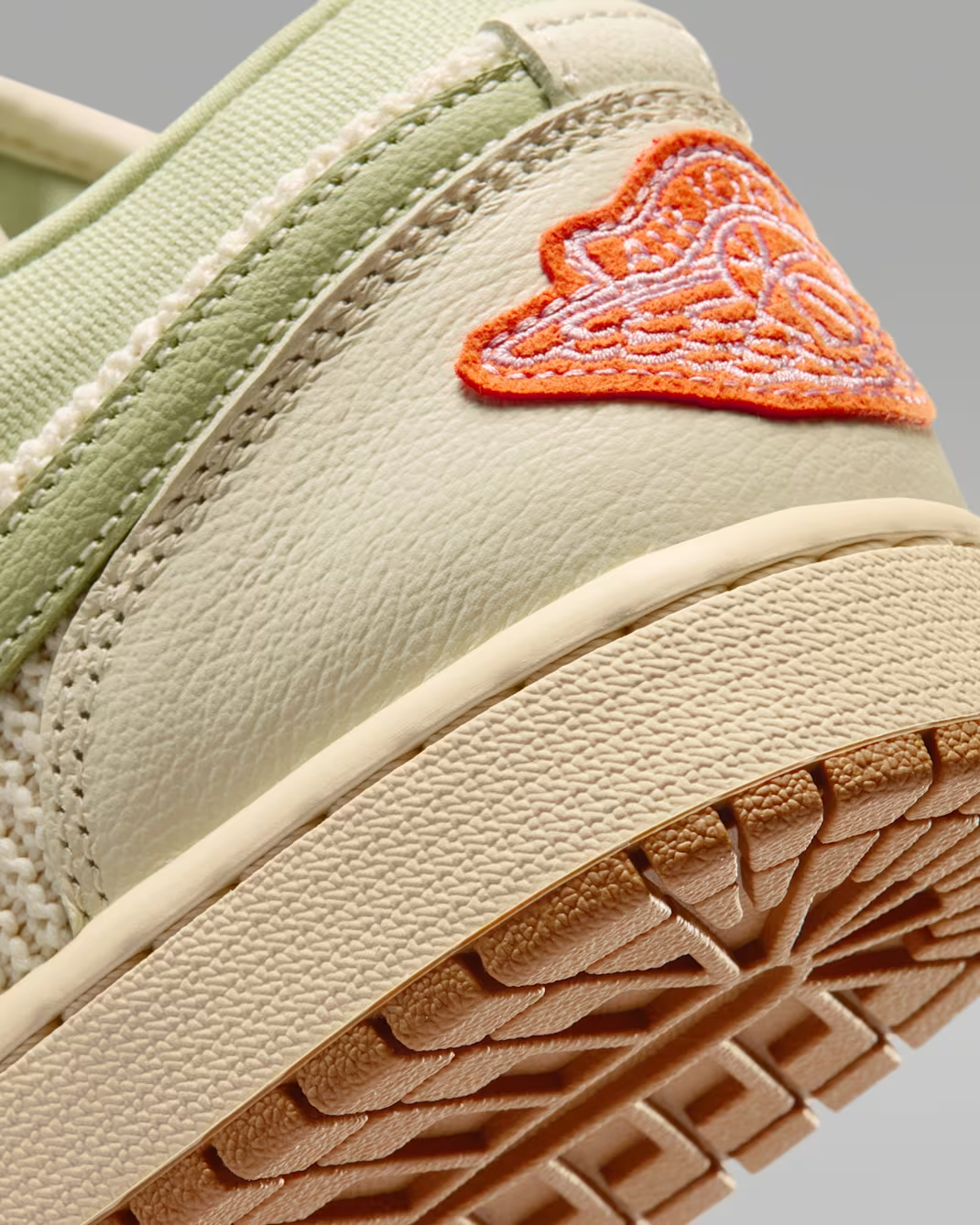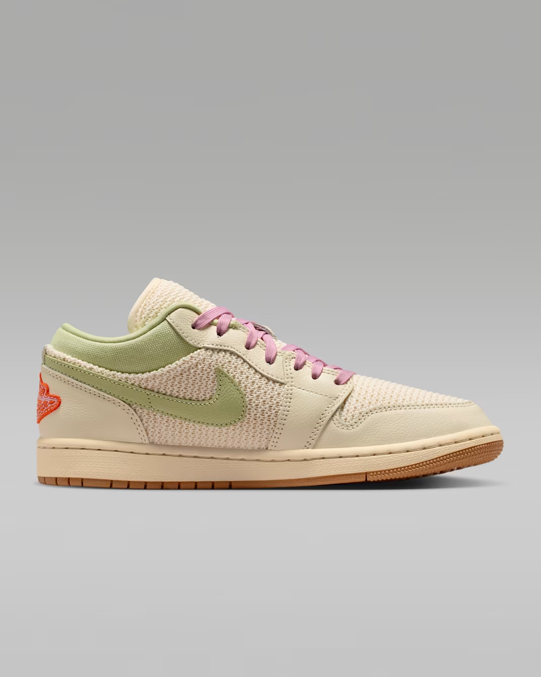 Điểm khác biệt lớn nhất của phiên bản Air Jordan 1 Low SE này chính là phần thân giày sử dụng các kết cấu vải dệt (woven textures). Sự thay đổi này không chỉ tạo điểm nhấn về thị giác mà còn mang lại cảm giác nhẹ nhàng hơn. Phối màu xanh cốm nhạt kết hợp cùng dây giày màu hồng tím tạo nên một tổng thể vô cùng hài hòa. Bạn sẽ cảm thấy vô cùng tươi mới và tràn đầy sức sống khi diện đôi giày này. Đây là lựa chọn lý tưởng cho những chuyến đi chơi hay dạo phố cùng bạn bè.