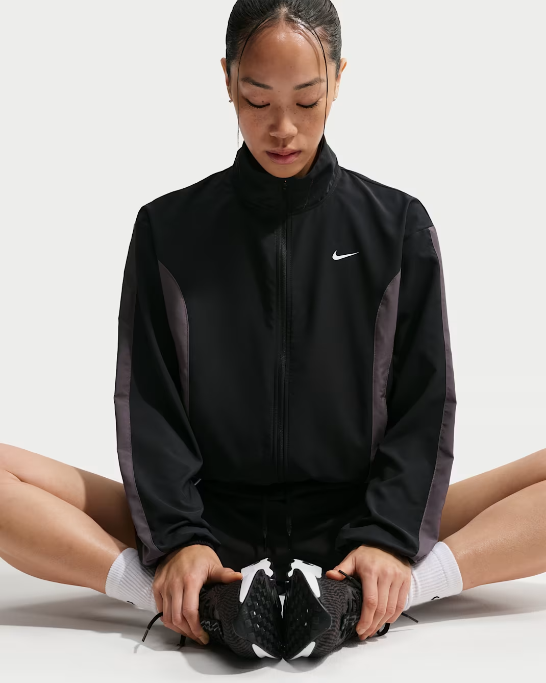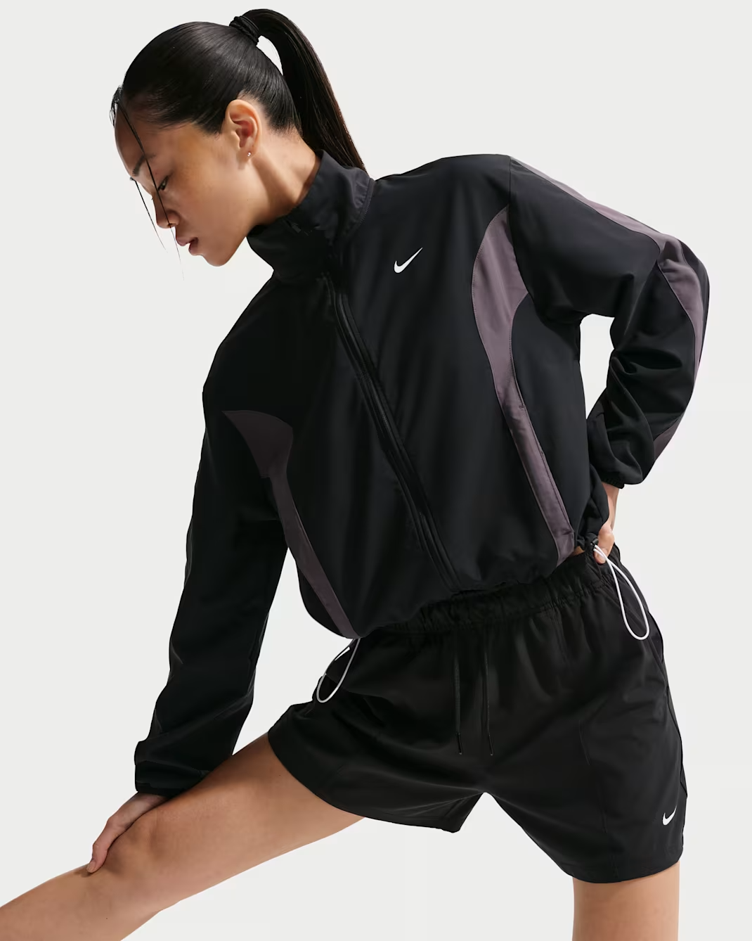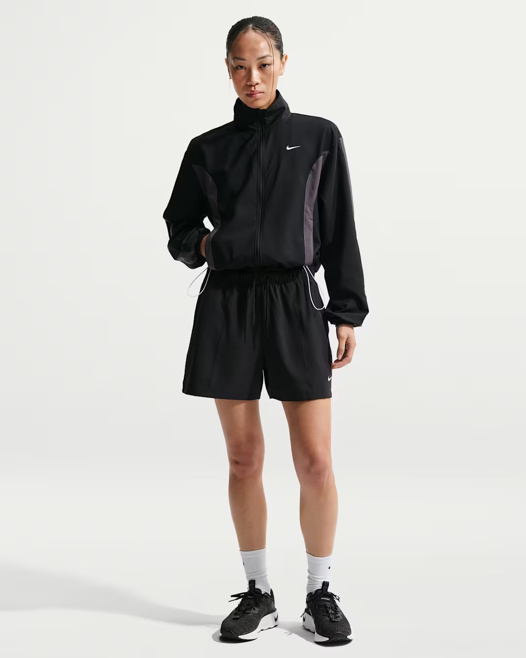 Nike One sở hữu form dáng rộng rãi (Roomy fit) giúp bạn dễ dàng phối đồ theo phong cách layer. Phần cổ tay áo được thiết kế co giãn giúp giữ áo cố định chắc chắn khi di chuyển. Đặc biệt, hệ thống dây rút (bungees) ở phần gấu áo cho phép bạn tùy chỉnh độ ôm theo ý muốn của mình. Bạn có thể để dáng áo suông thoải mái hoặc rút gọn để tạo phong cách cá tính hơn. Hơn nữa, khóa kéo toàn phần mượt mà giúp bạn điều chỉnh độ thông thoáng một cách nhanh chóng.